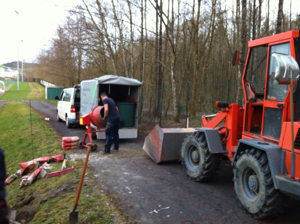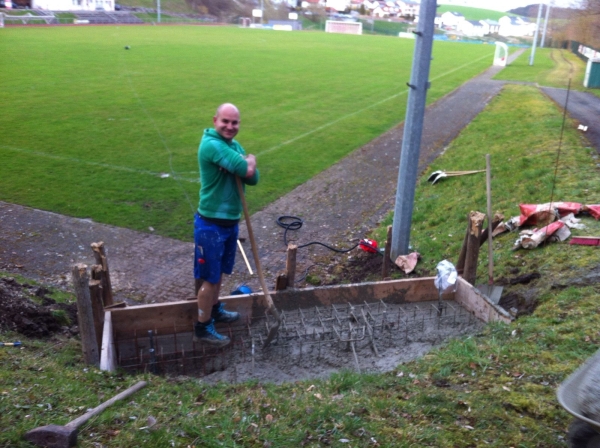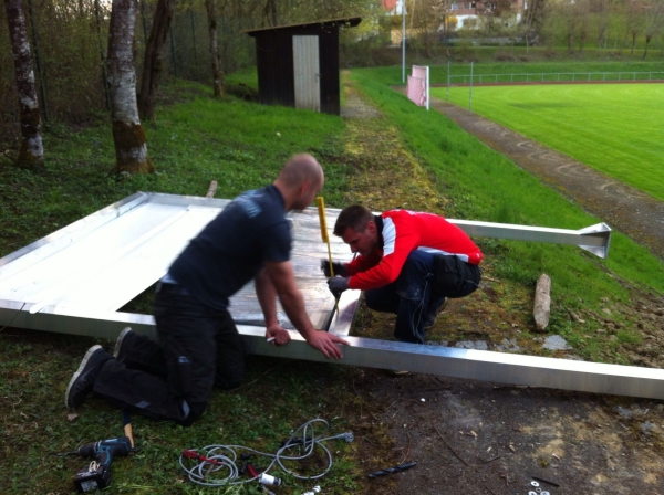 Mit vielen Fleißigen Händen wurde schließlich der Rahmen geschweißt und das Fundament betoniert bis hin zur Montage der Anzeigetafel.